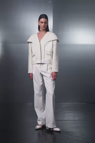 The Maia Pants are a refined take on classic tailoring, designed with a fluid wide-leg silhouette that moves effortlessly. The minimalist structure, featuring discreet belt loops and a clean front closure, enhances their timeless appeal. Crafted for both versatility and elegance, these trousers transition seamlessly from day to night, embodying understated luxury.